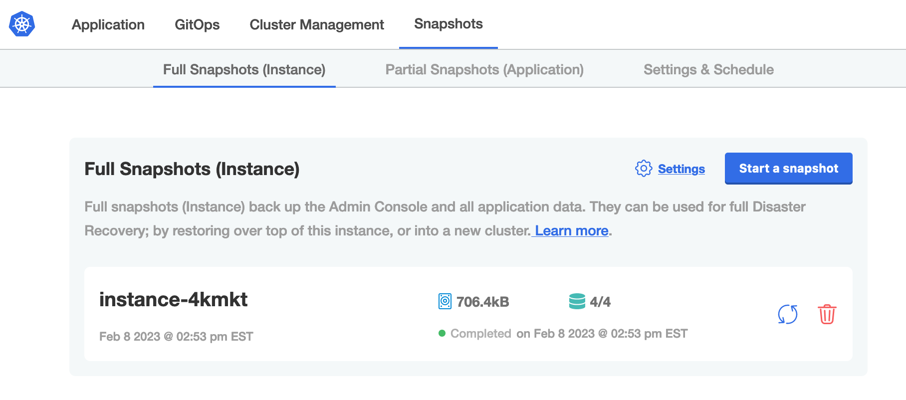 1. Select Full Snapshots (Instance) from the Snapshots tab.